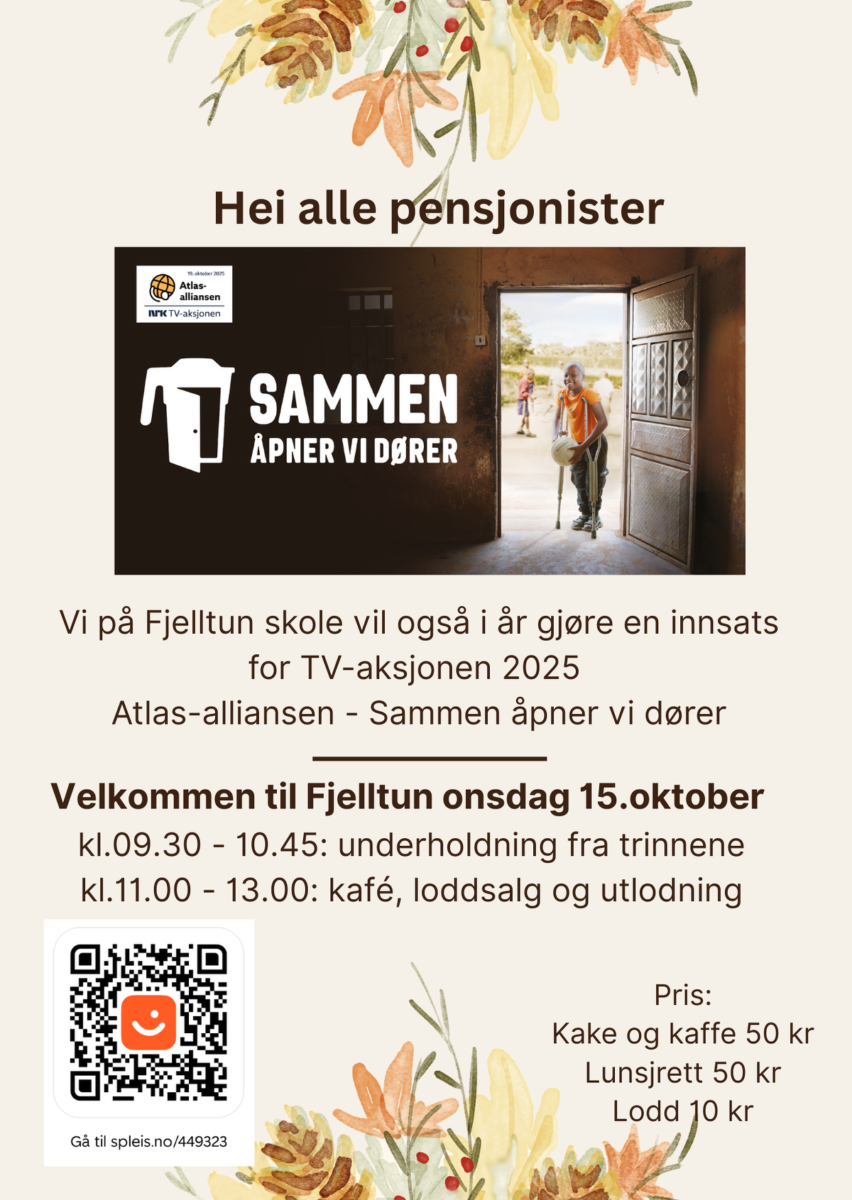 Fjelltun har i flere år gjort en formidabel innsats for TV-aksjonen. Nå kan du være med og støtte deres arbeid. Det blir underholdning fra elever. kafé, loddsalg og utlodning.
